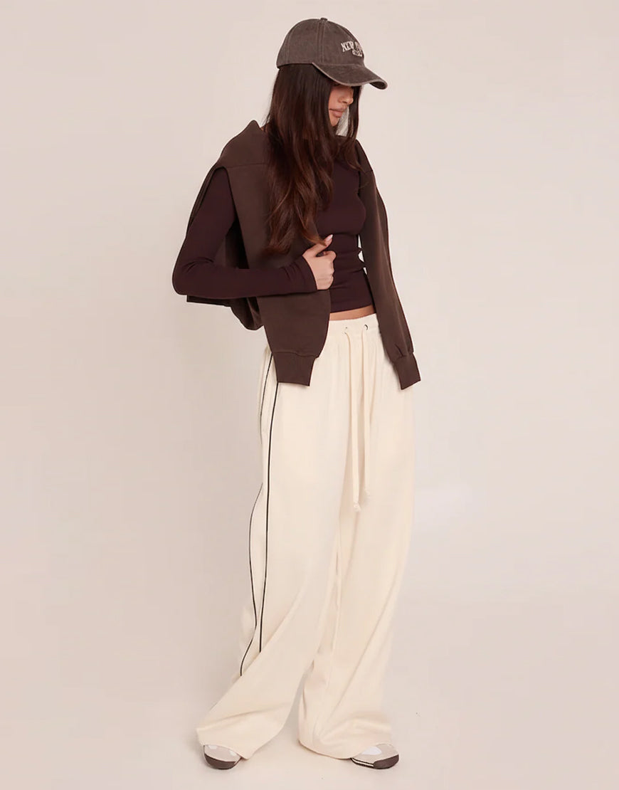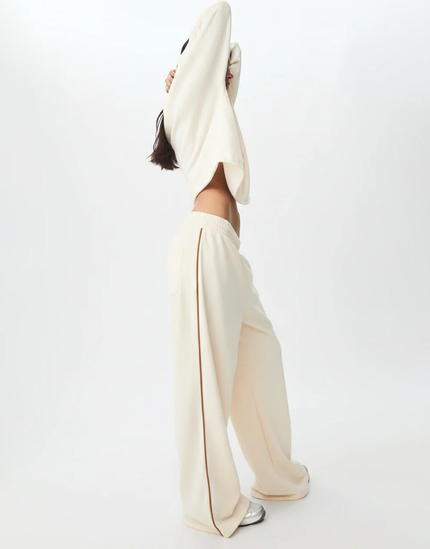 LT1K Sand Single Side Piping Detail Wide-Leg Trouser.(Perfect For All Season)