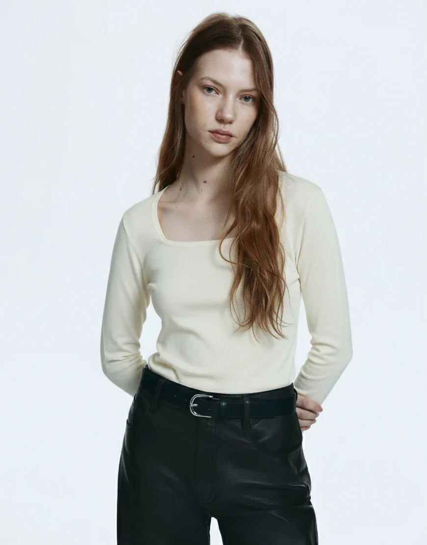 LT1K Sand Full-Sleeves Square-Neck Full Sleeve Slim Top.(Perfect For All Season)