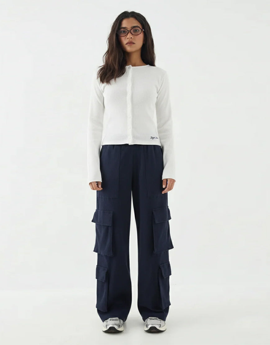 LT1K Navy Blue Multi Pocket Cargo Wide-Leg Trouser.(Perfect For All Season).