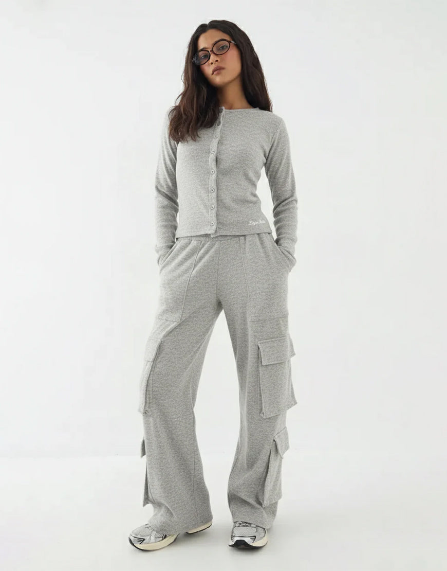 LT1K Grey Multi Pocket Cargo Wide-Leg Trouser.(Perfect For All Season).