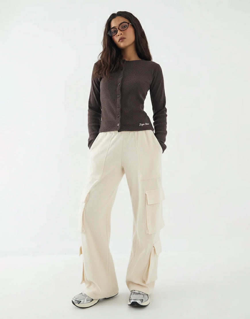 LT1K Brown Multi Pocket Cargo Wide-Leg Trouser.(Perfect For All Season).