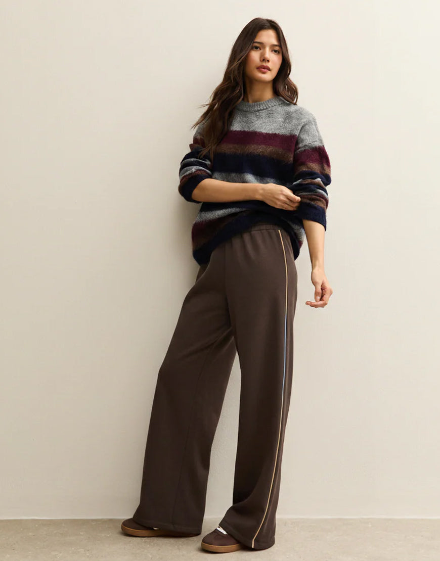 LT1K Brown Single Side Piping Detail Wide-Leg Trouser.(Perfect For All Season)