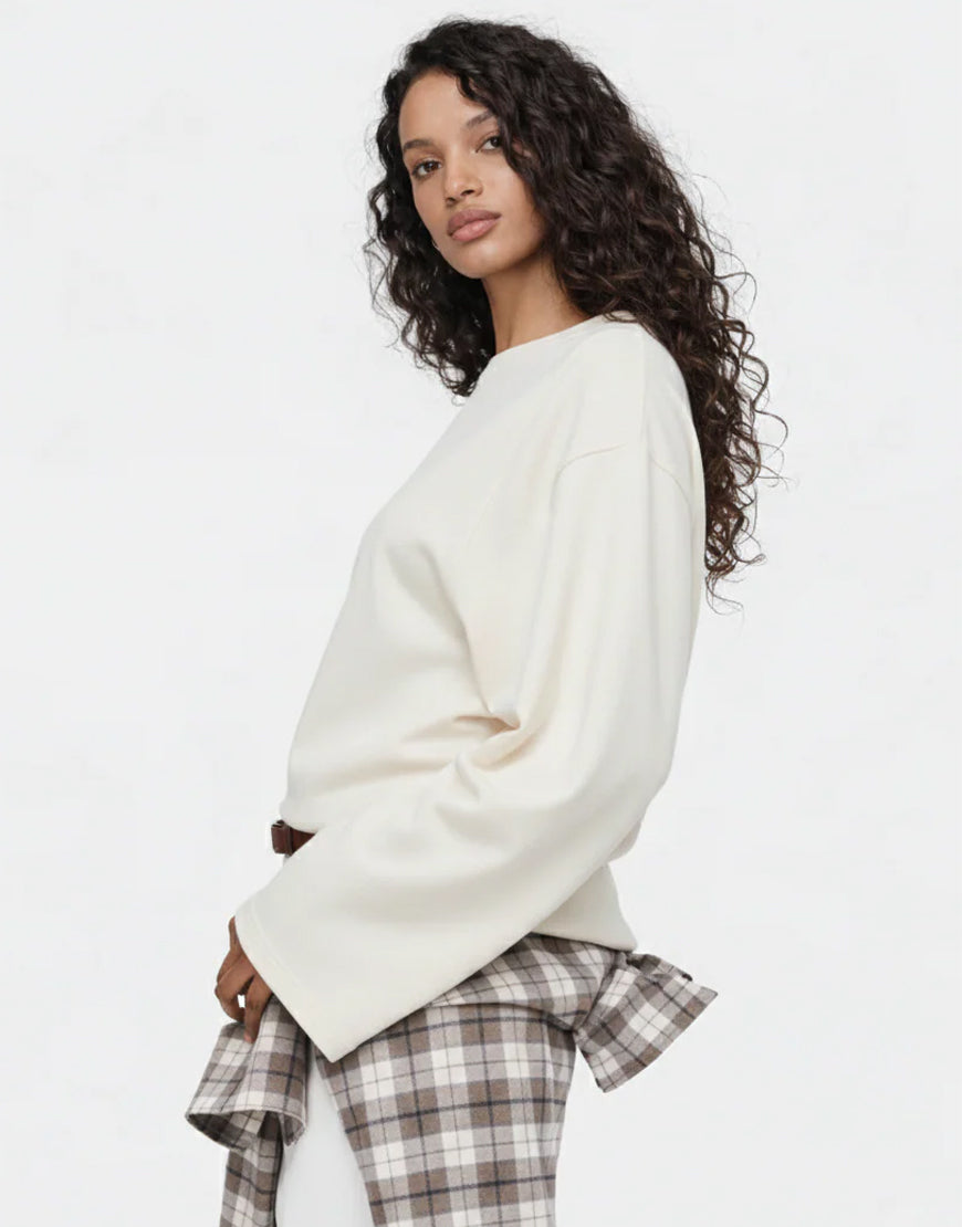LT1K White Essential Full-Sleeves Boat-Neck With Bell Sleeve Slim Top.(Perfect For All Season)
