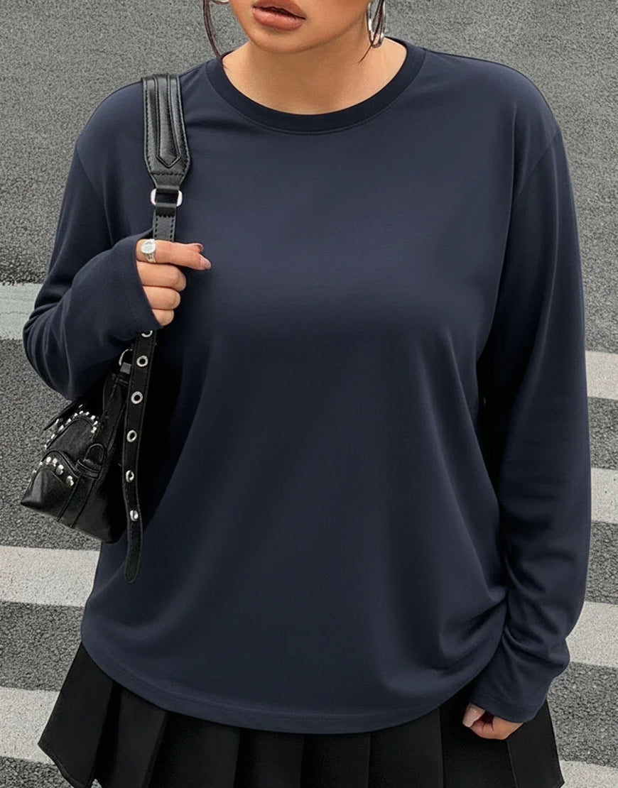 LT1K Navy Blue Full-Sleeves Scoop-Neck Full Sleeve Slim Top.(Perfect For All Season)