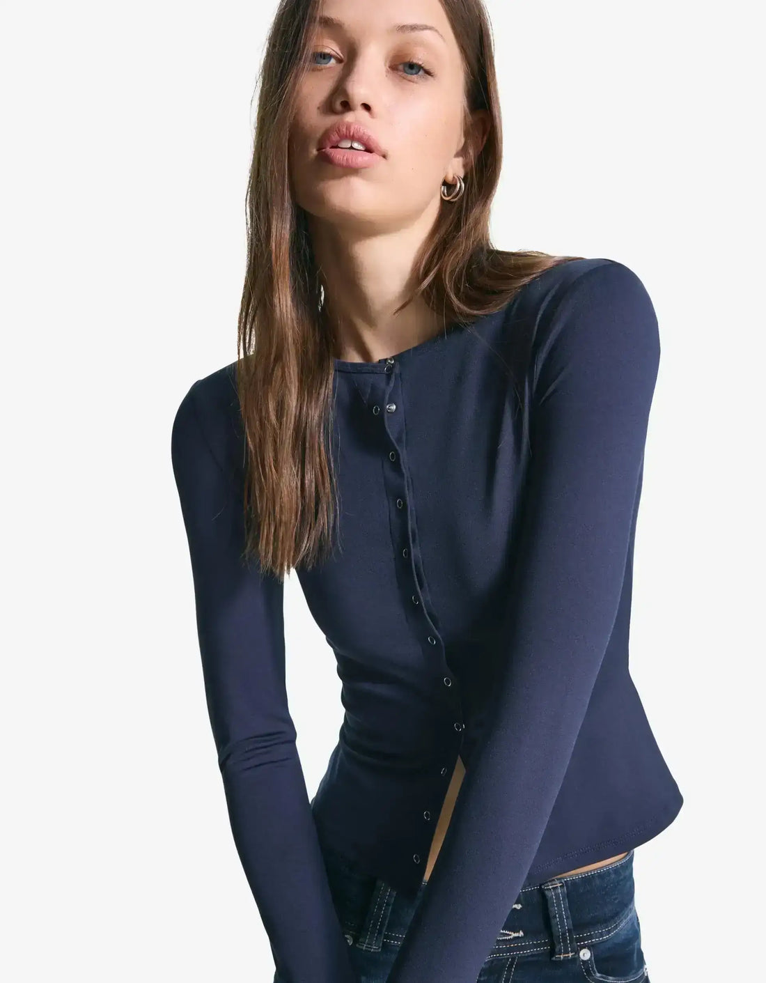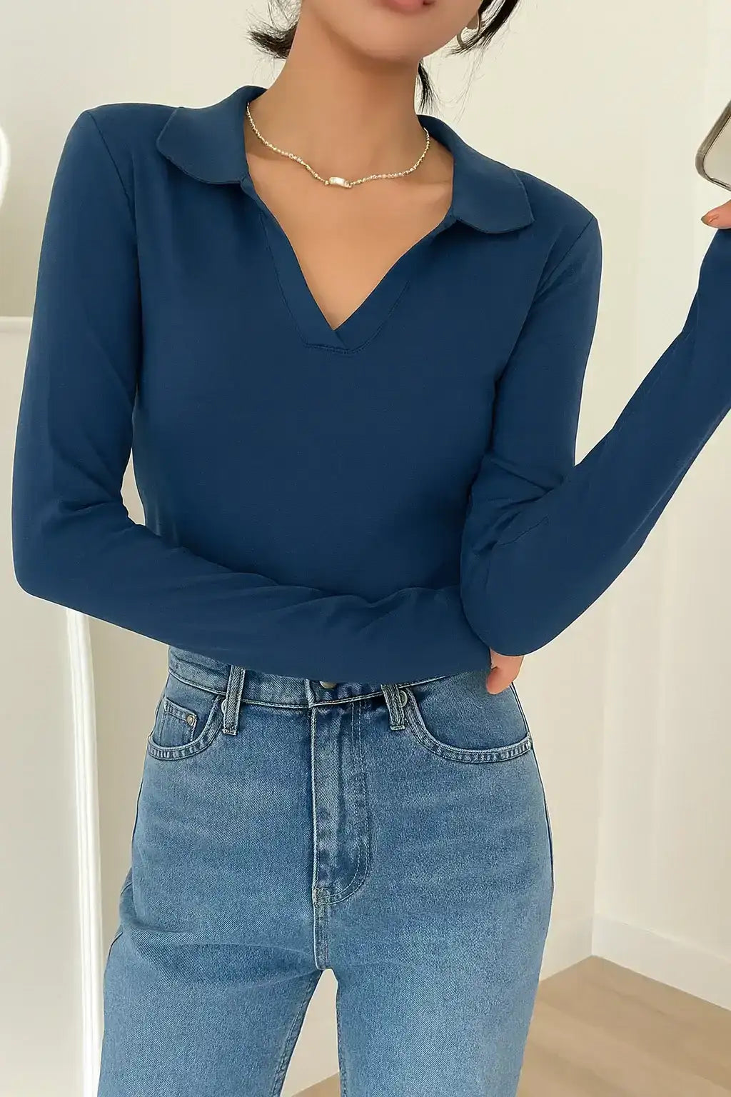 LT1K Navy Blue Essential Long sleeve T-shirt with buttons.(Perfect For All Season)