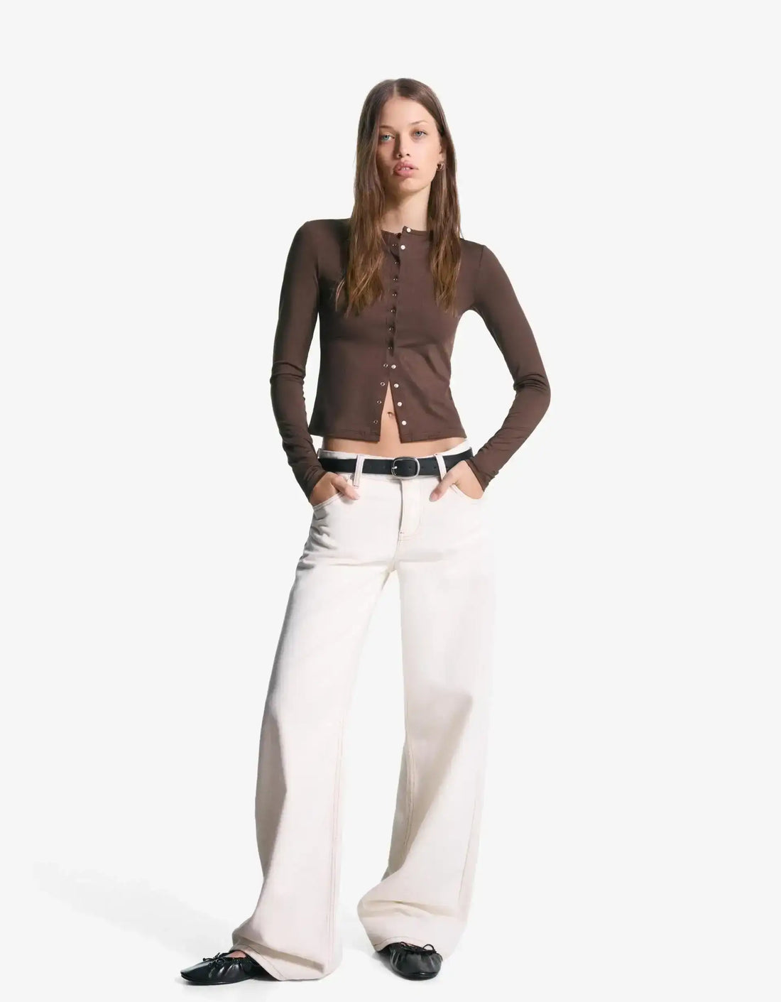 Bershka White High-Waist Loose Leg Jeans.
