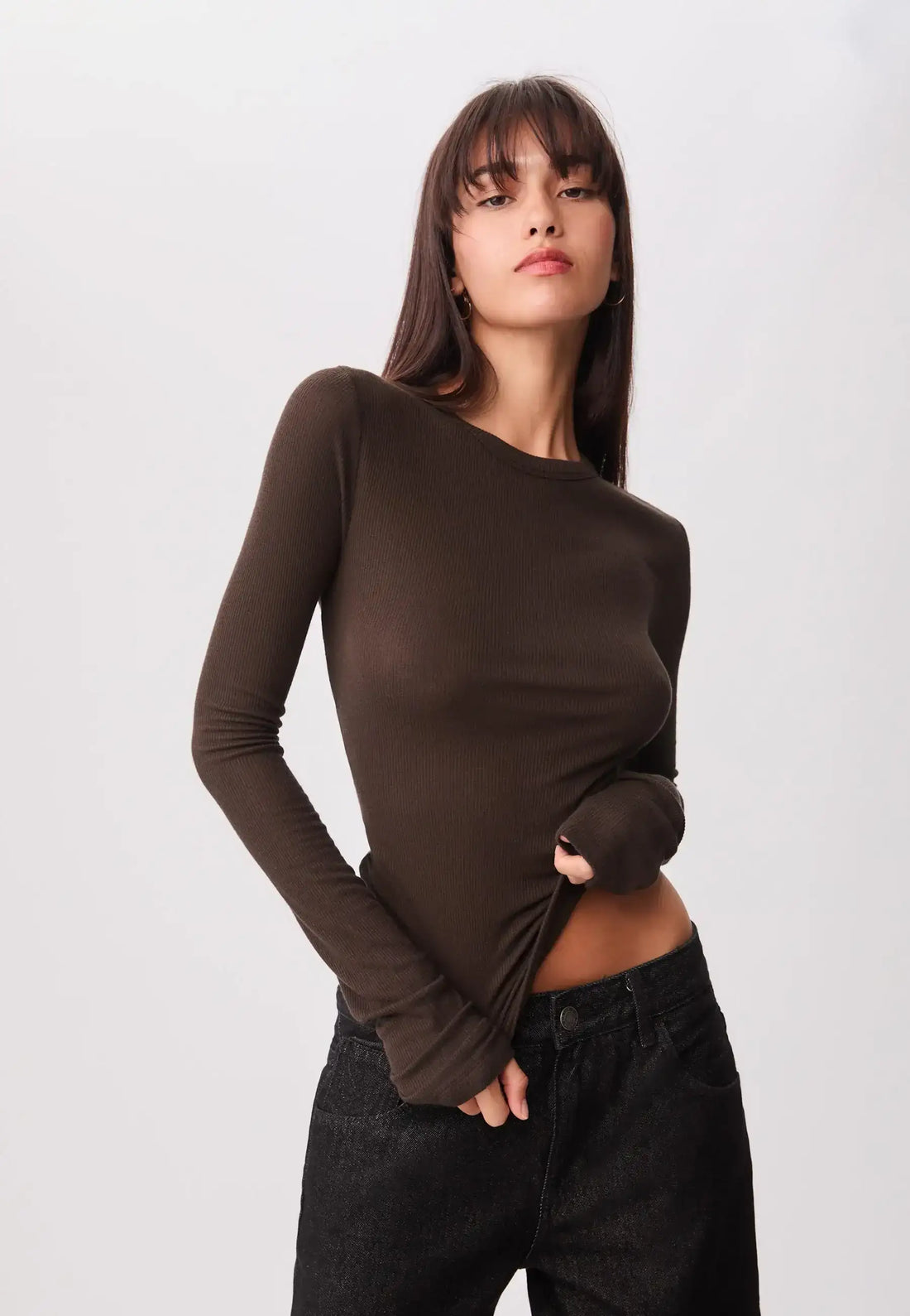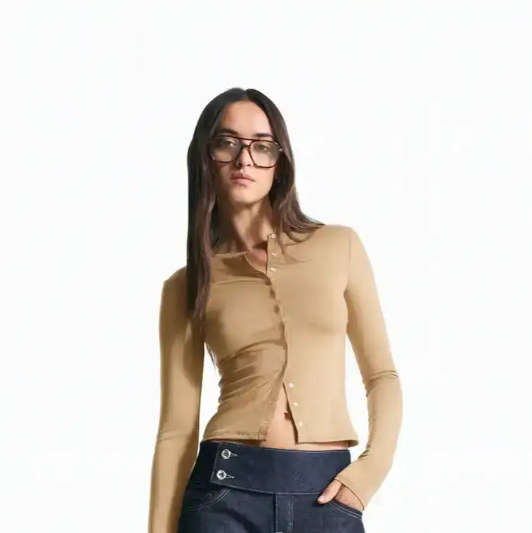 LT1K Brown Essential Long sleeve T-shirt with buttons.(Perfect For All Season)