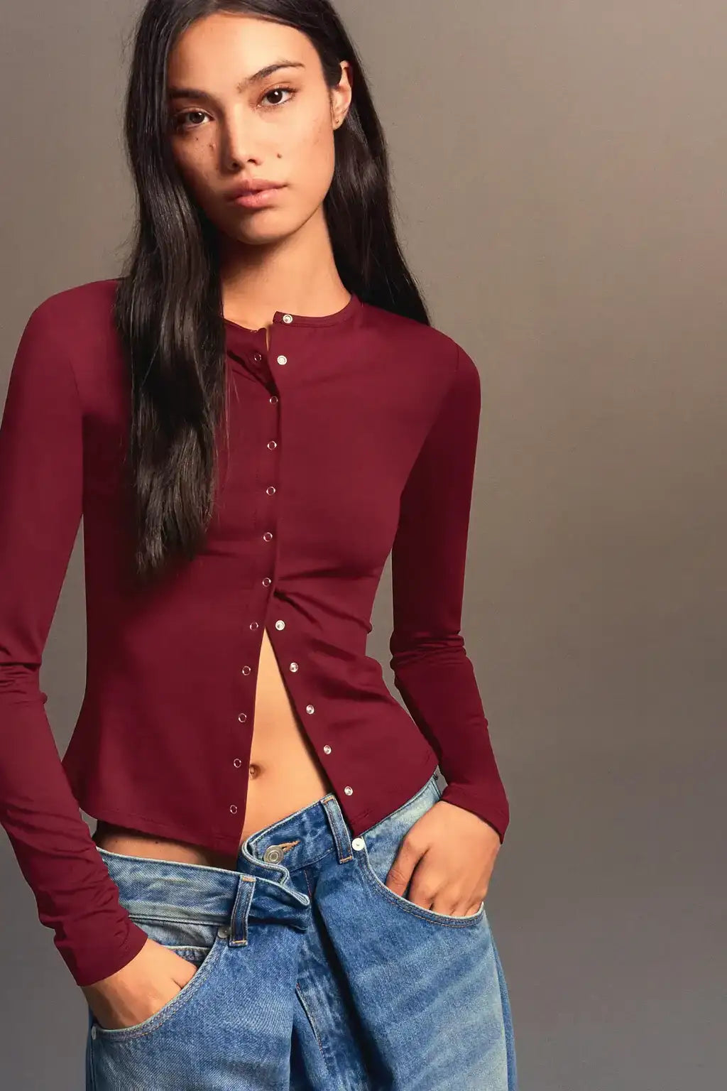 LT1K Maroon Essential Long sleeve T-shirt with buttons.(Perfect For All Season)