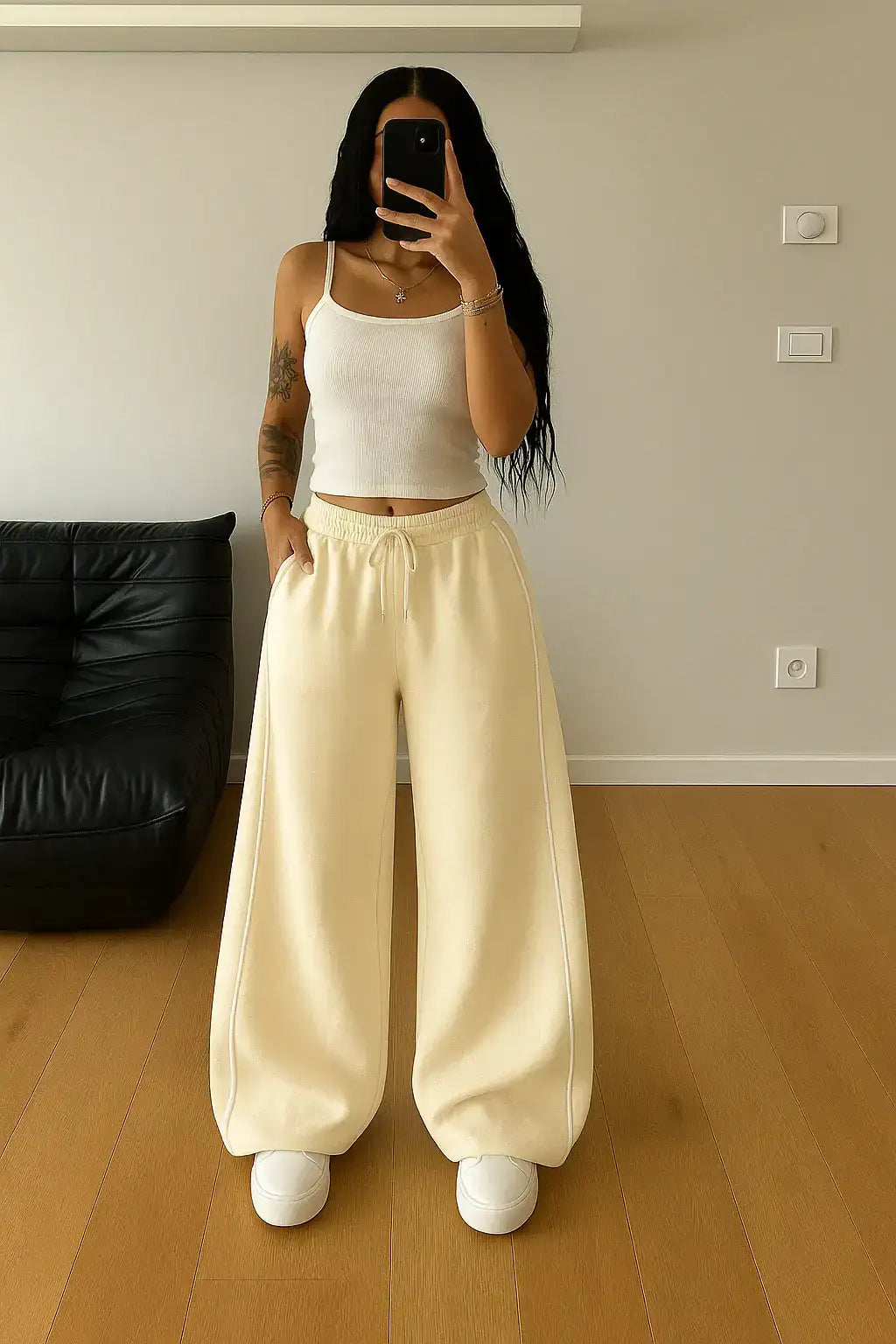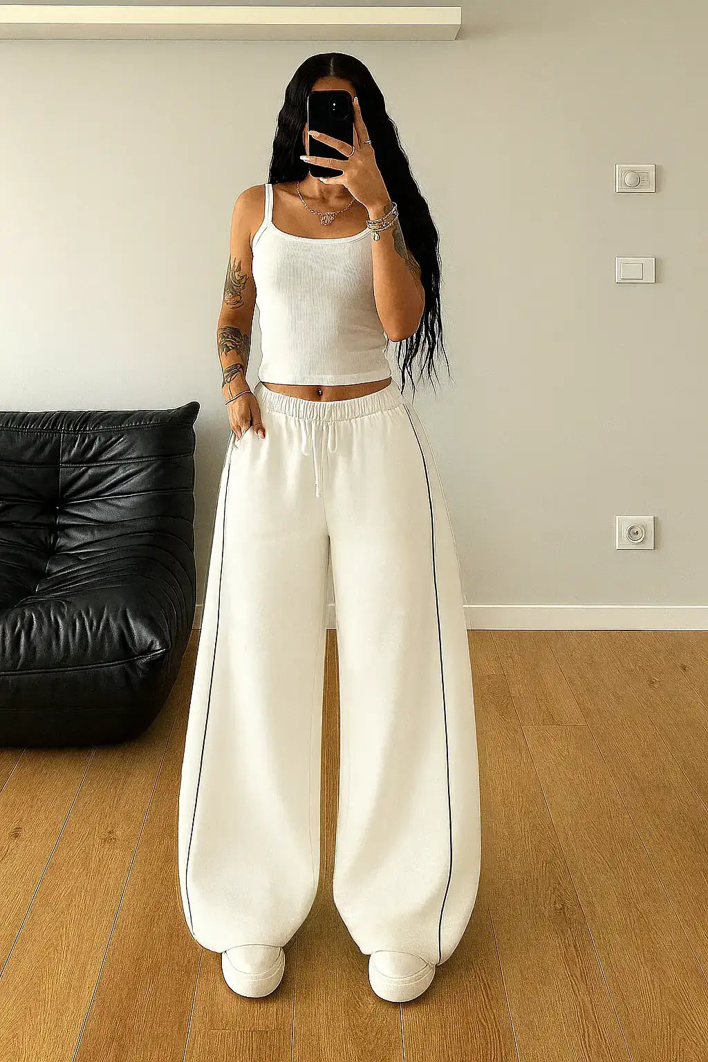 LT1K White Wide-Leg Trouser.(Perfect For All Season)