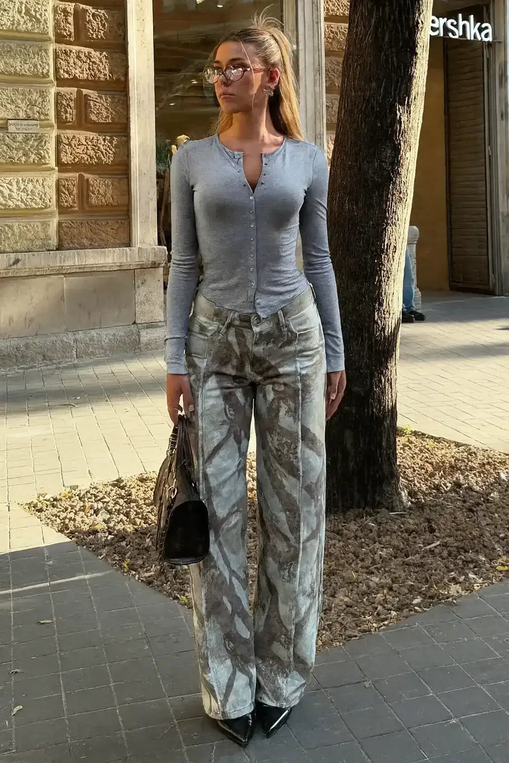 Zara Light Grey Wide-Leg Jeans.