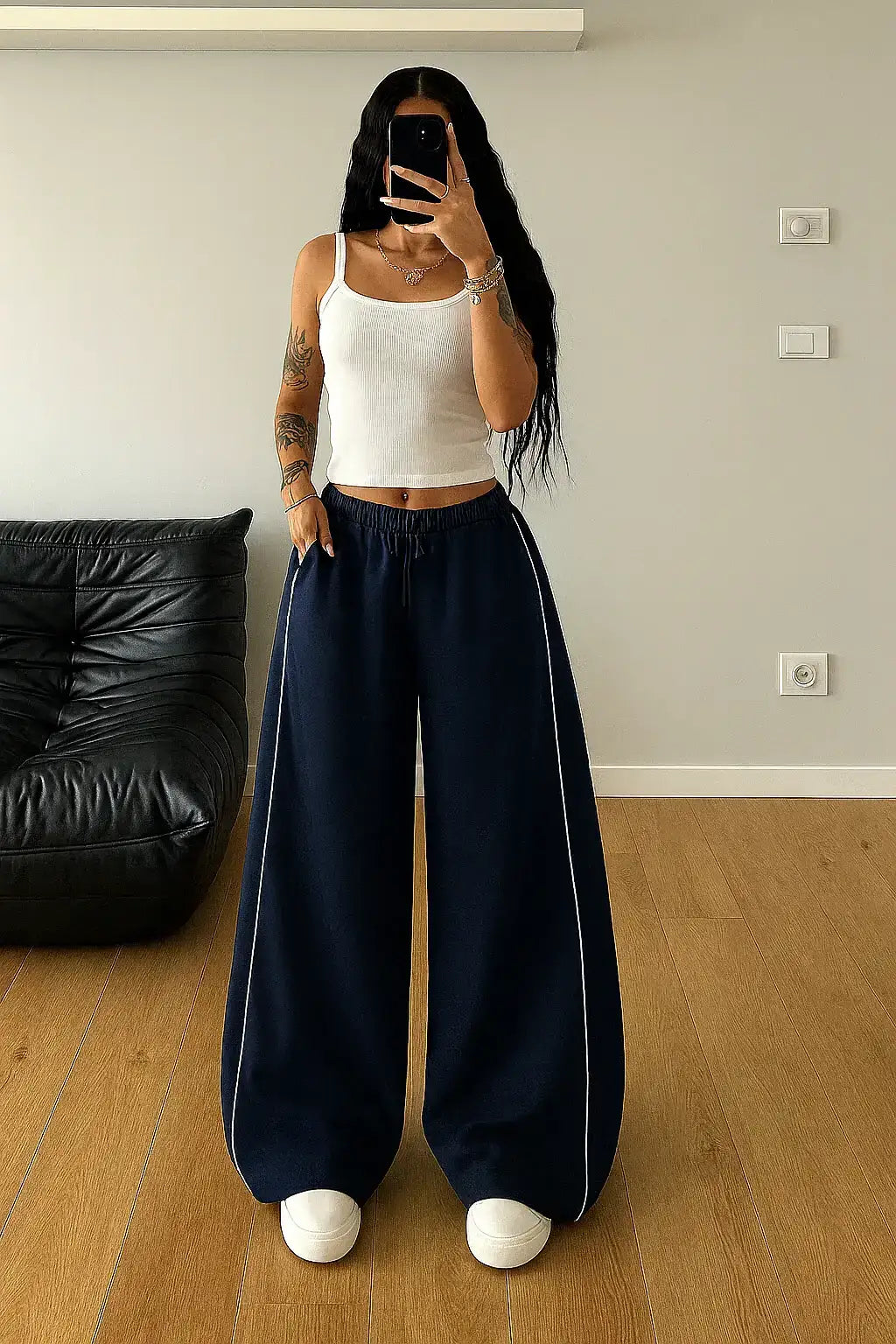 LT1K Navy Blue Wide-Leg Trouser.(Perfect For All Season)