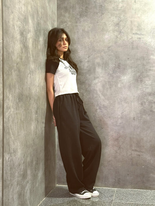 Black Contrast waist Wide-Leg Trouser.(Perfect For All Season)