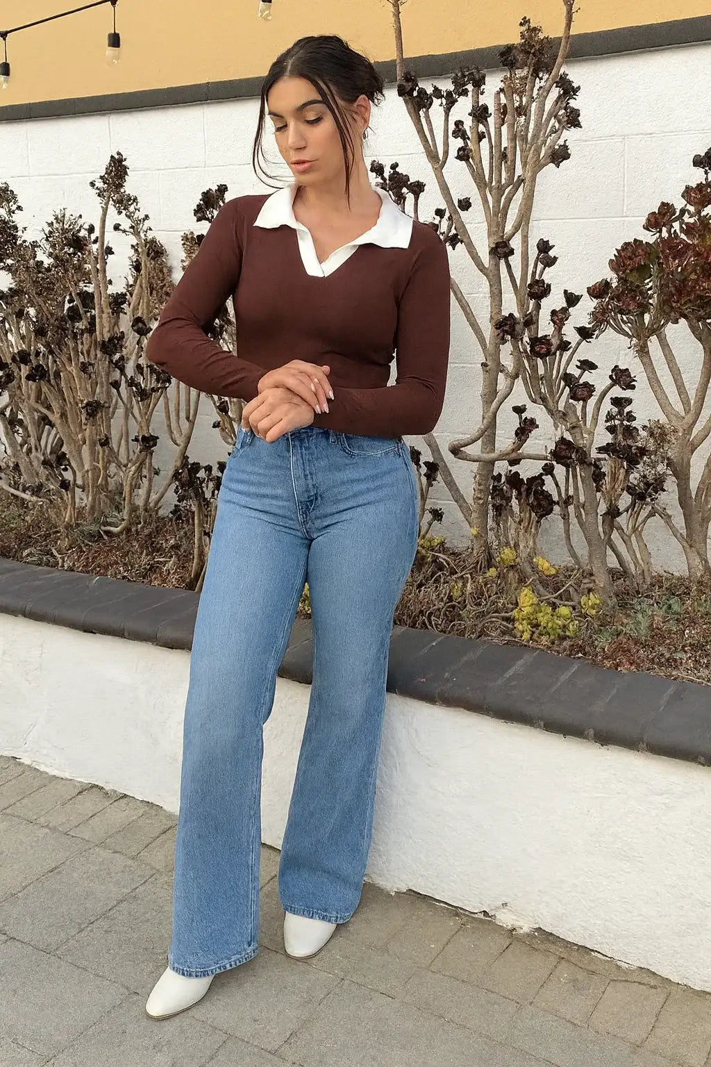 LT1K Brown Essential Full-Sleeves Contrast Collar Slim T-Shirt.(Perfect For All Season).