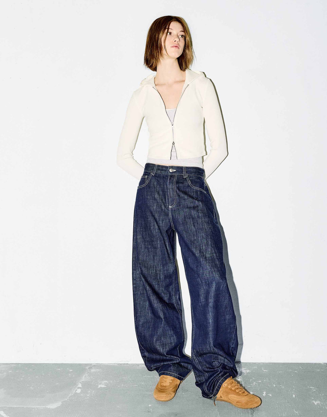 LT1K Sand Zip-Up Oversize Crop hoodie.
