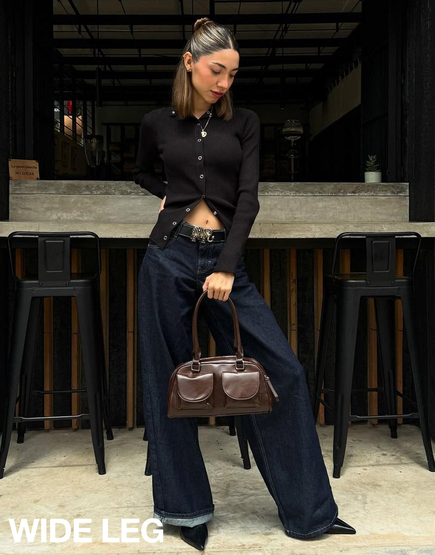 Brand: LT1K Fit: Wide-LegMaterial: 100% Cotton(Non-Stretchable)Length:40-42Colour : Dark BlueRise: High-Waisted.