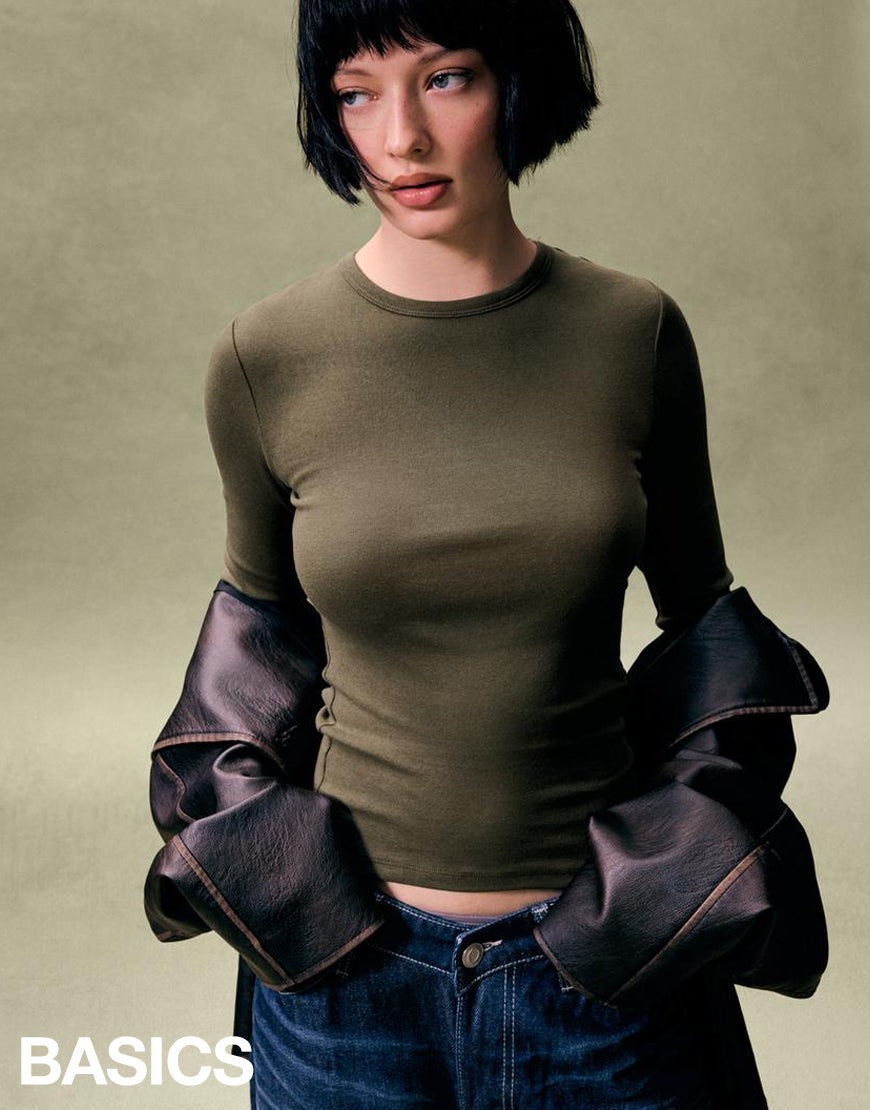 LT1K Brown Tape Essential Full-Sleeves Slim Top.(Perfect For All Season).