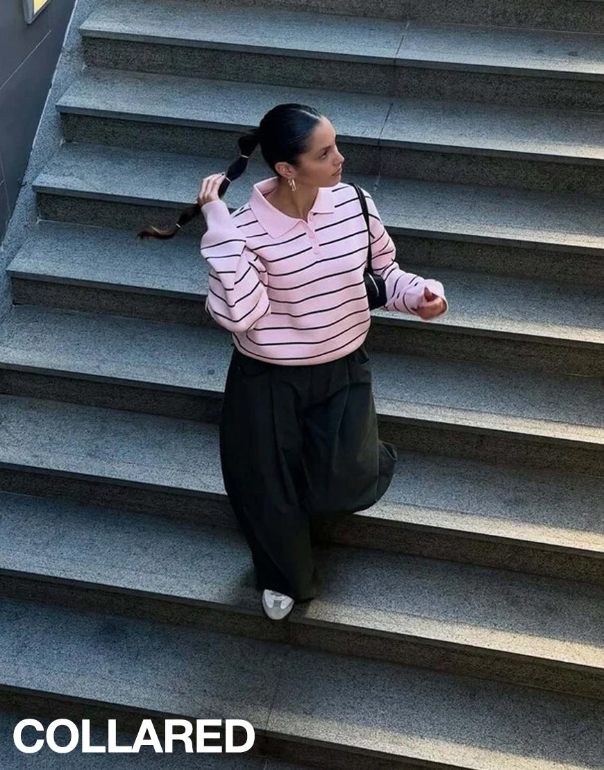 LT1K White Essential Full-Sleeves Contrast Collar Slim Top.(Perfect For All Season).
