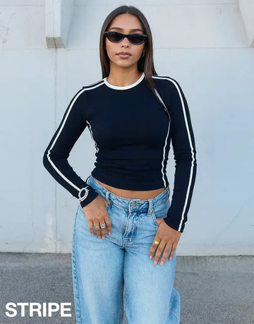 LT1K Black Essential Full-Sleeves Slim Top With Tape.(Perfect For All Season).