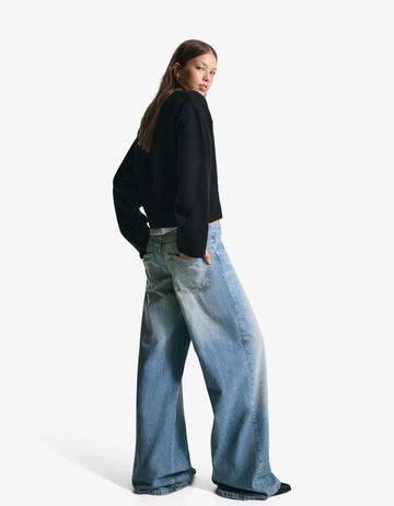 LT1K Black Two-Tone Wide-Leg Jeans (Stitched Hem).