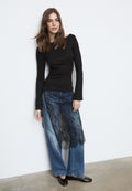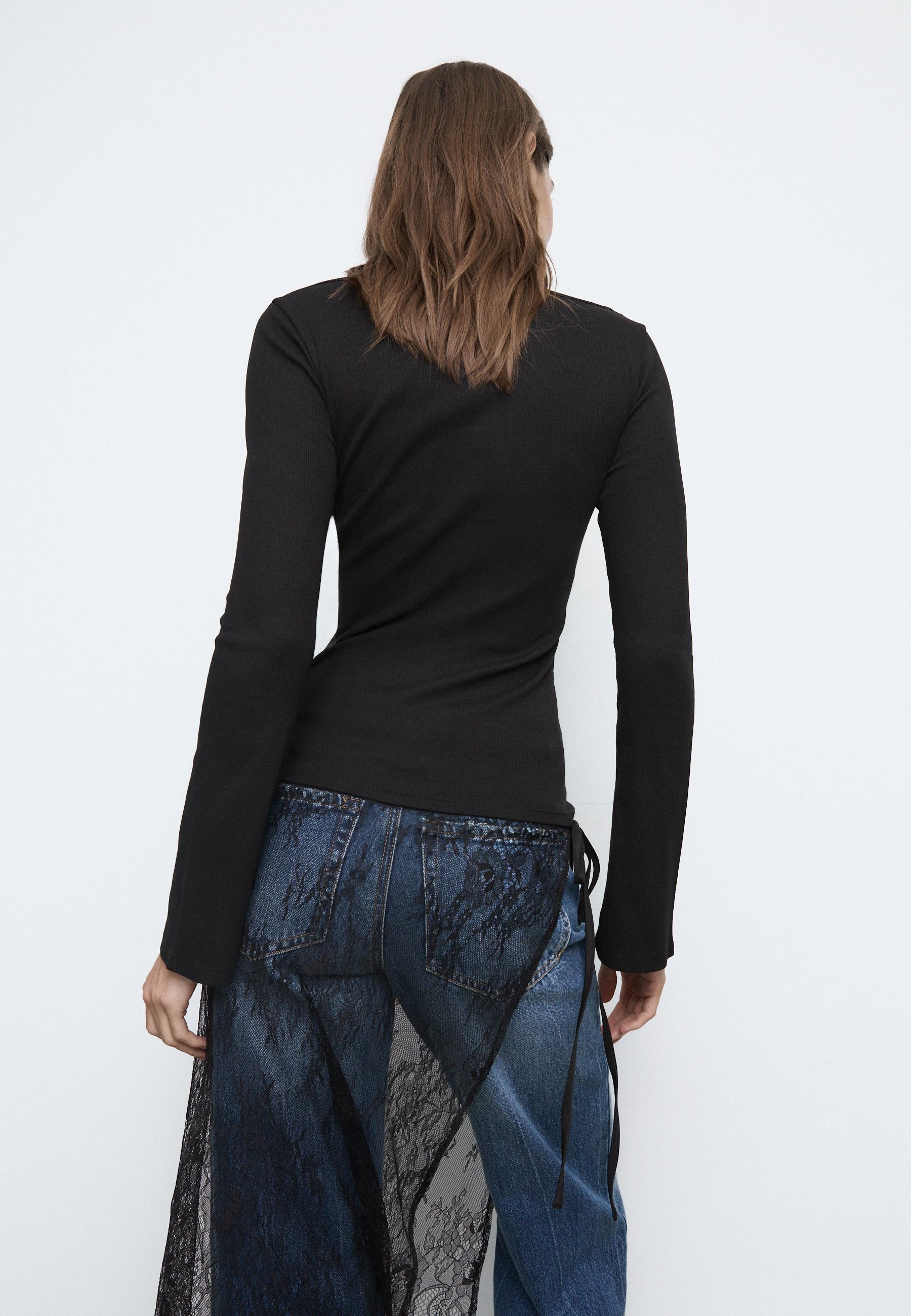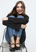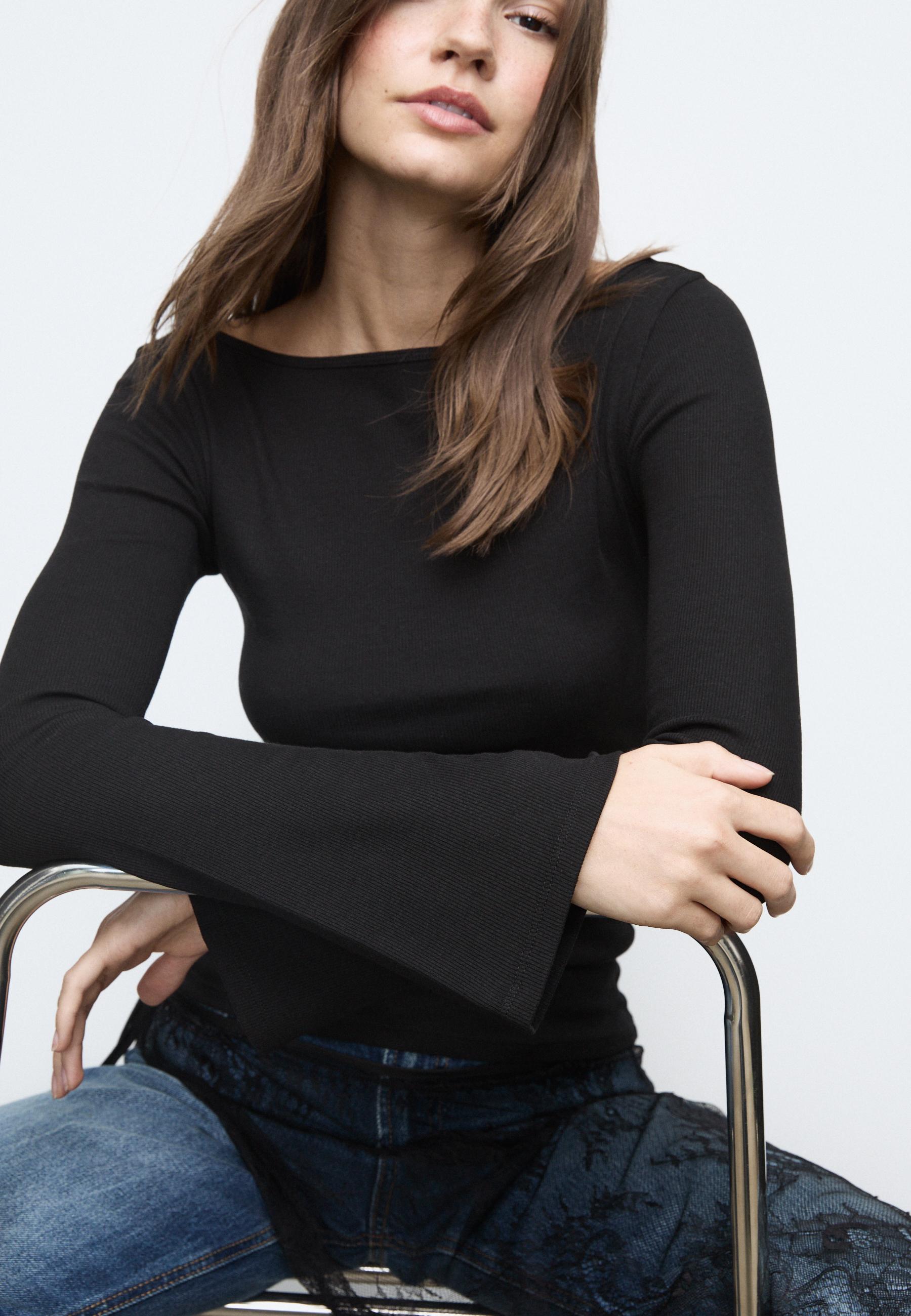 LT1K Black Essential Full-Sleeves Boat-Neck With Bell Sleeve Slim Top.(Perfect For Winter Season).