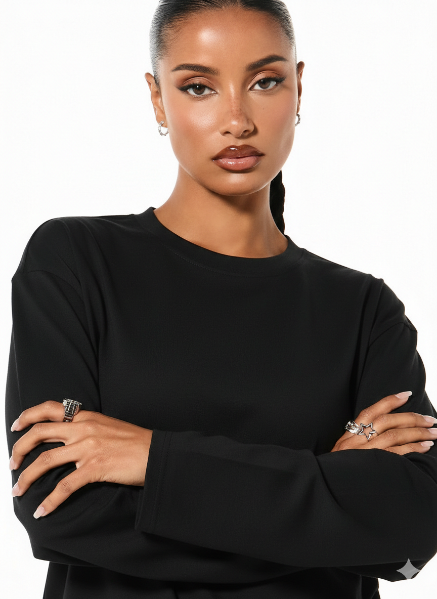 LT1K Black Oversize full Sleeves Top.(Perfect For All Season)
