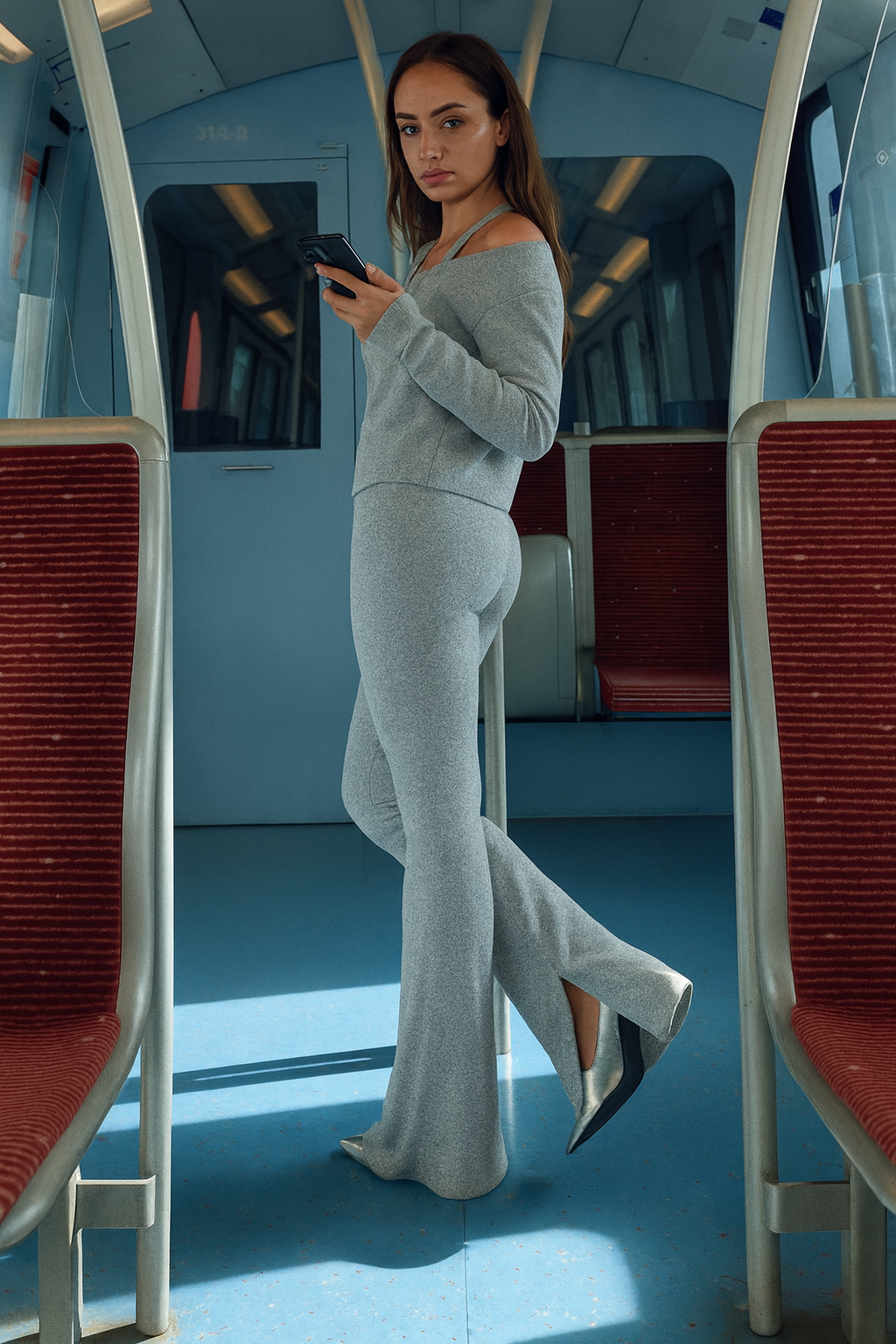 LT1K Light Grey Fix Belt Slit Flare Trouser.(Perfect For All Season)