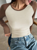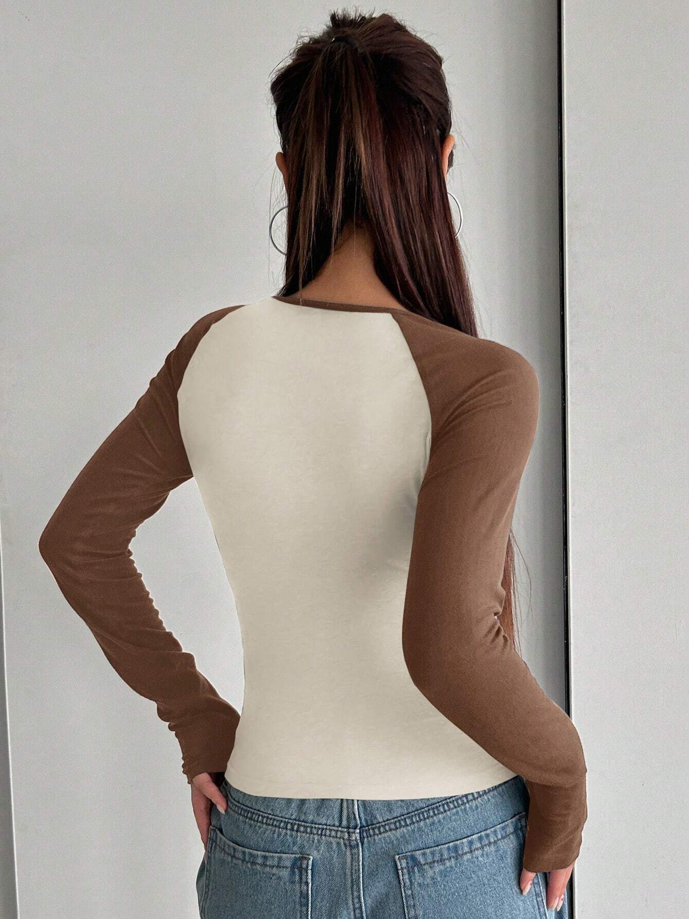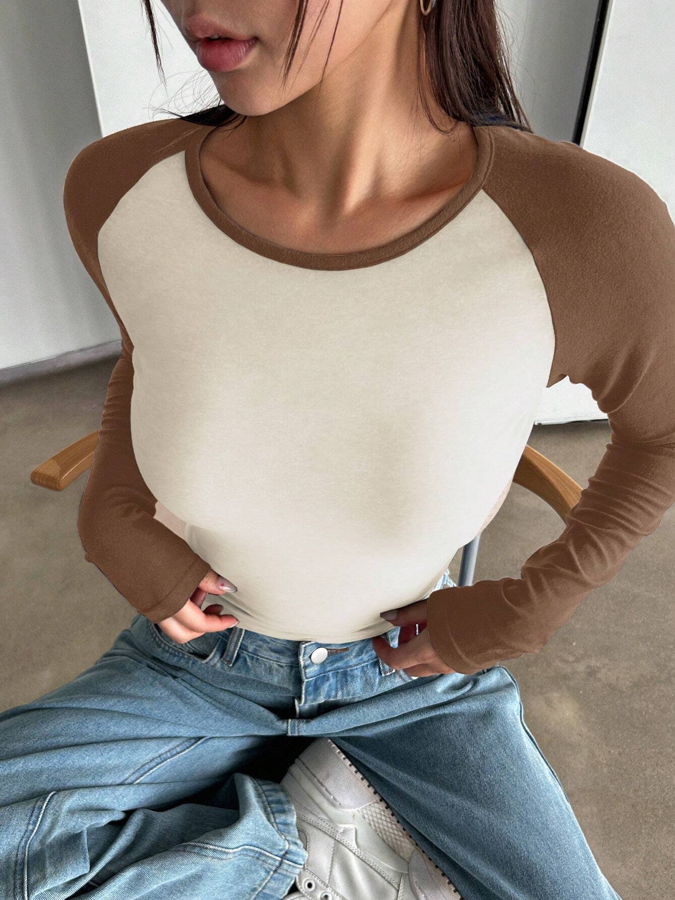 LT1K Brown/Sand Essential Full-Sleeves Raglan Slim Top.(Perfect For Winter Season).