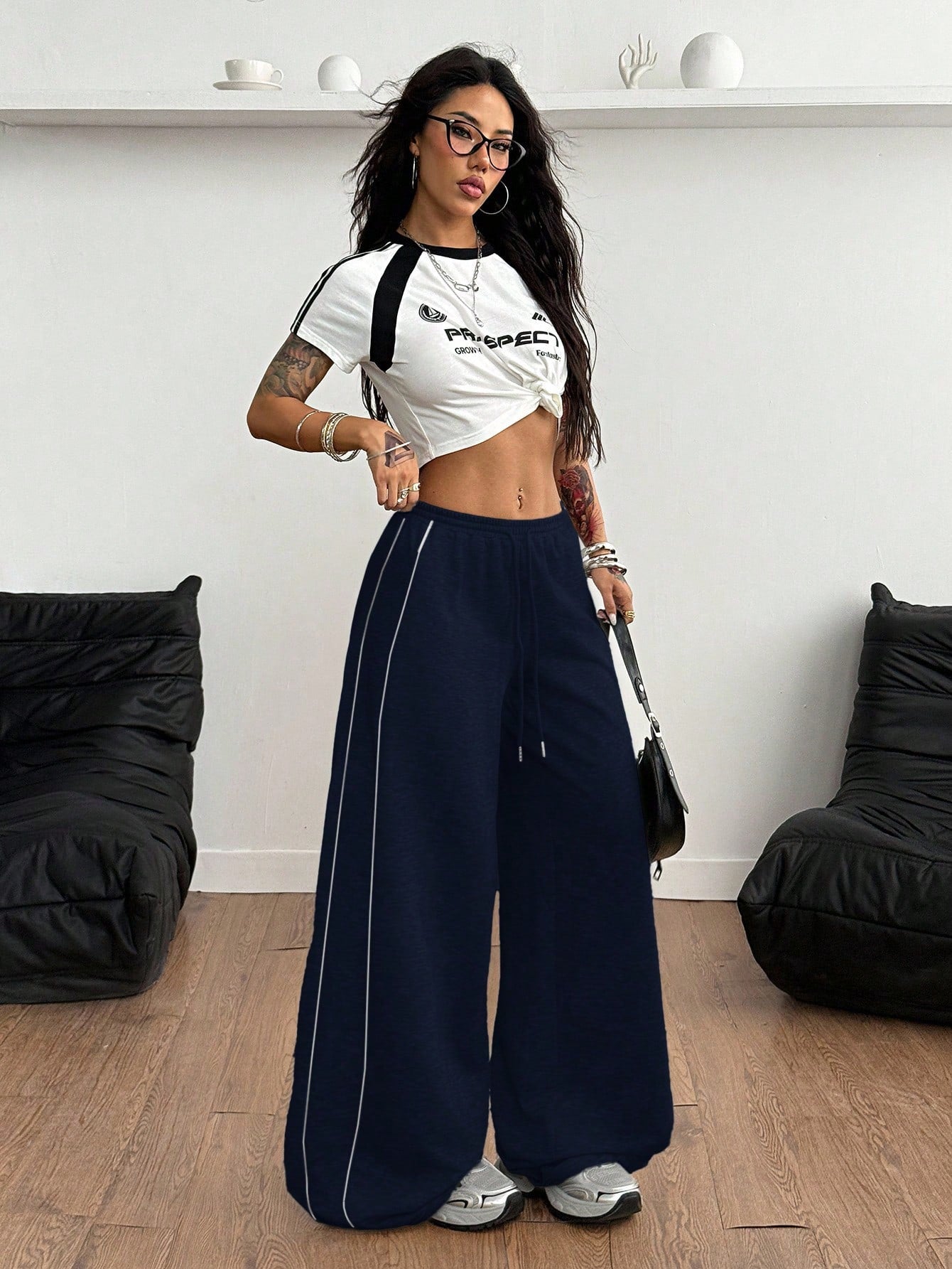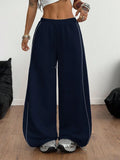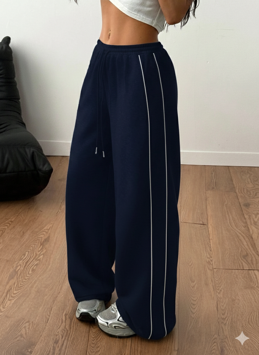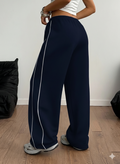 LT1K Navy Blue Double Side Piping Detail Wide-Leg Trouser
